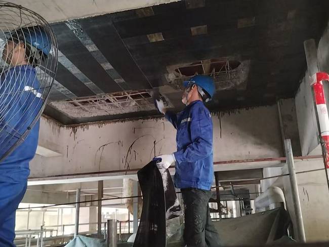 接下來是配制粘結(jié)劑,將粘結(jié)劑均勻地涂抹在樓板表面和碳纖維布上,然后將碳纖維布粘貼在預(yù)定位置,用滾筒反復(fù)滾壓,排除氣泡,確保碳纖維布與樓板緊密結(jié)合。
